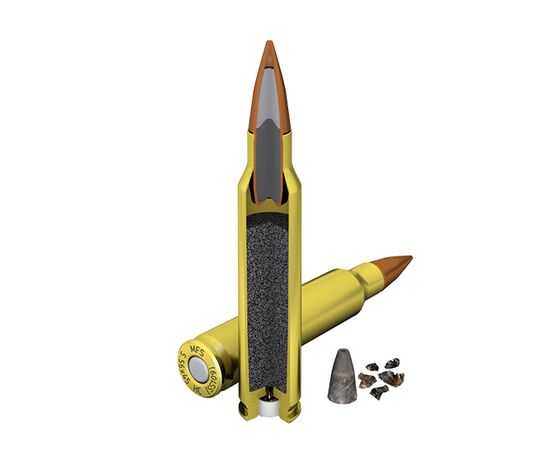 - SS109: The SS109 bullet is a 62 grain FMJ with a steel penetrator tip, designed to enhance penetration through barriers. It is the standard NATO ball round and is known for its excellent performance and reliability. High-quality, reloadable brass casings with boxer primers for added value. The 62 grain SS109 FMJ bullet ensures precision and consistency, ideal for marksmen and shooting enthusiasts.